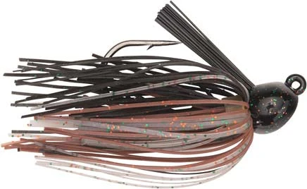 This flipping jig comes with a unique inverted line tie that plays a crucial role in safeguarding your line against brush-related fraying and potential line damage, ensuring that your jig stays precisely where you want it. It’s weedless head design grants you the confidence to glide through any underbrush, no matter the challenges it’s presented. Equipped with a robust Black Nickel Mustad hook which provides both power and sharpness to secure your catch effectively!