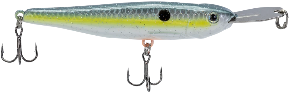 The sleek profile ensures excellent castability, while the ultra-sharp treble hooks guarantee solid hooksets.