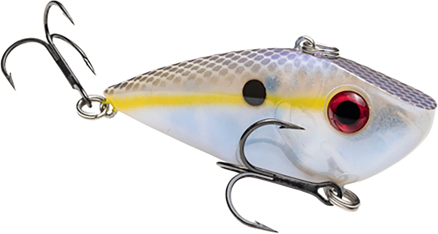 - Available in a variety of colors with their infamous 3D Eyes, and measuring in at 2.25 inches and 3/8 oz, the Strike King Red Eyed Shad Lipless Crankbait is truly a stunner in the water! See the table below for a look at the whole Red Eye Shad Lineup!