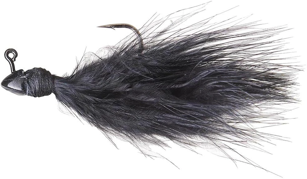 - Equipped with a 90 degree Jig Hook that helps maintain that natural horizontal presentation, as well as Hand Tied Marabou hair for ultimate realism, this thing catches fish with ease.